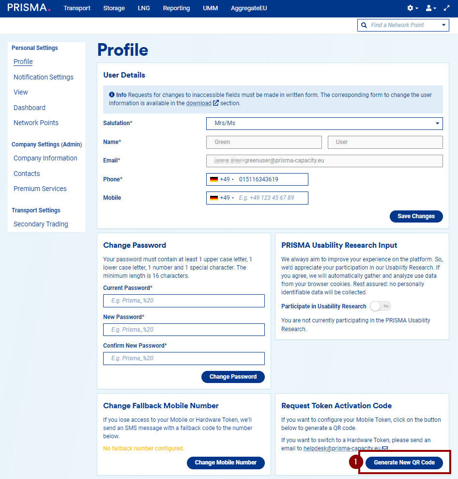 1. After entering your profile, you will have an option to request a new QR code by clicking on 'Generate New QR-code'.