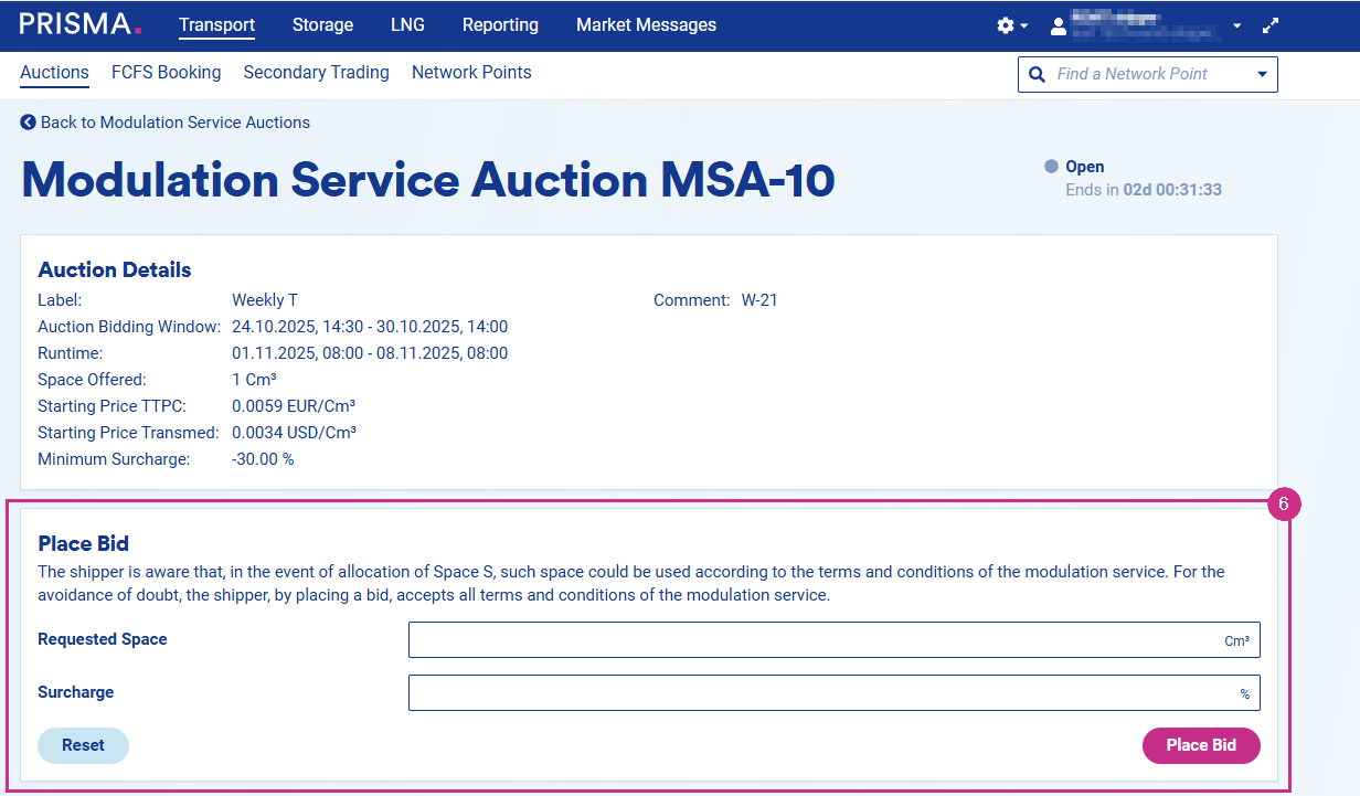 Modulation Service Auctions (MSA) is a service provided by PRISMA on behalf of TSOs to enable the marketing of modulation space in their pipeline. The auctions are scheduled and run at the discretion of the Operators and are allocated pay-as-bid. The ranking during the allocation phase is done based on the surcharge and the final allocation is at the discretion of the operators. The results are accessible per auction and you will be notified about the result.