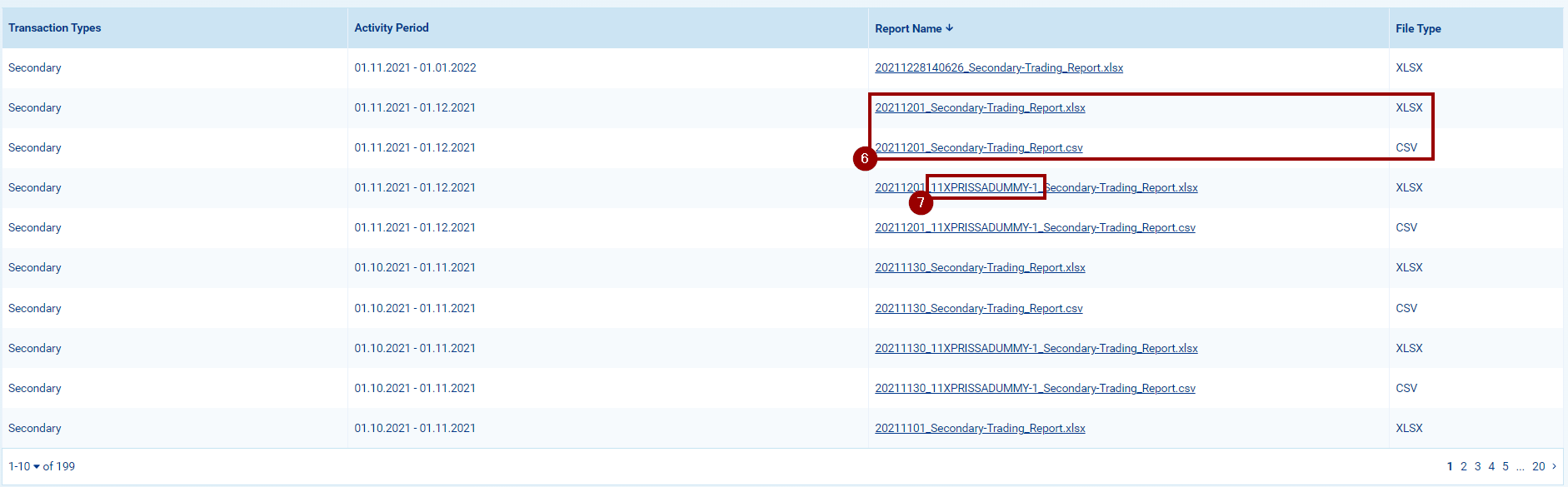 7. Keep in mind the for the secondary market, two reports are created: one for the overall activity on the platform and one specific to your company. This can be identified because its name contains your company's EIC.