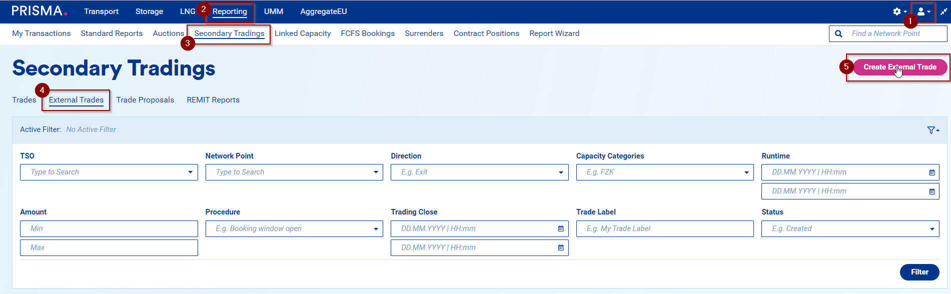 If you subscribe to PRISMA's REMIT Reporting service, you can also upload trades concluded outside the platform to report them to ACER. Any user of your company can do so.