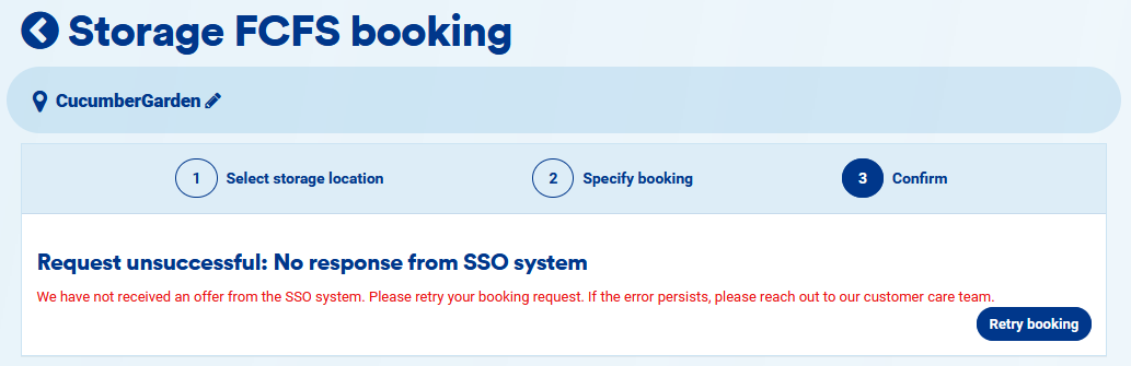 Request unsuccessful: the SSO's system does not reply to the FCFS booking request.