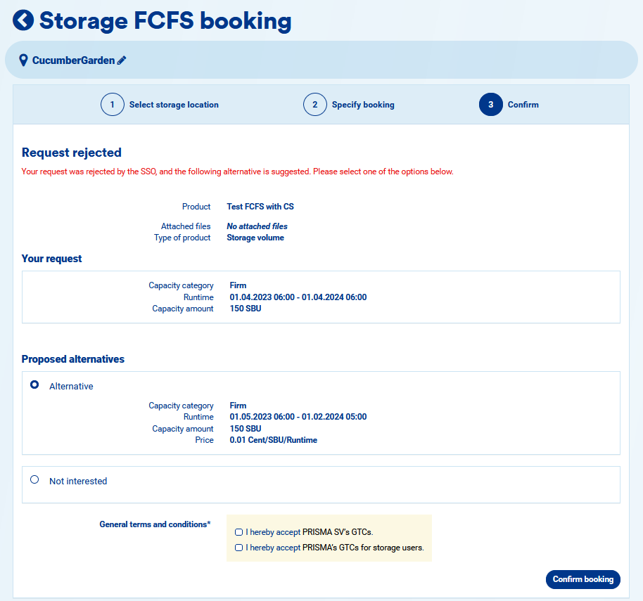 Proposed alternative: the SSO rejects the FCFS booking request and proposes an alternative to it.