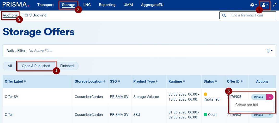 Storage - How to Place a Pre-Bid in a Storage Offer?