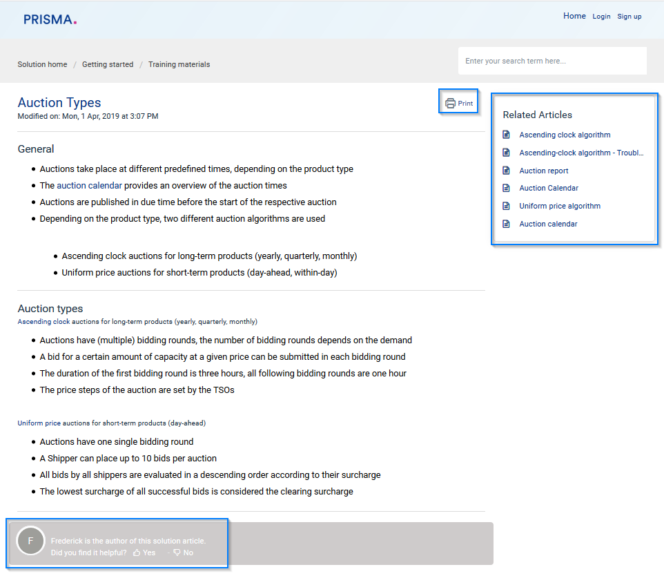 - It is possible to print each article in our knowledge base.