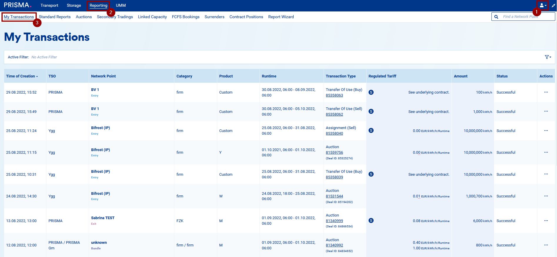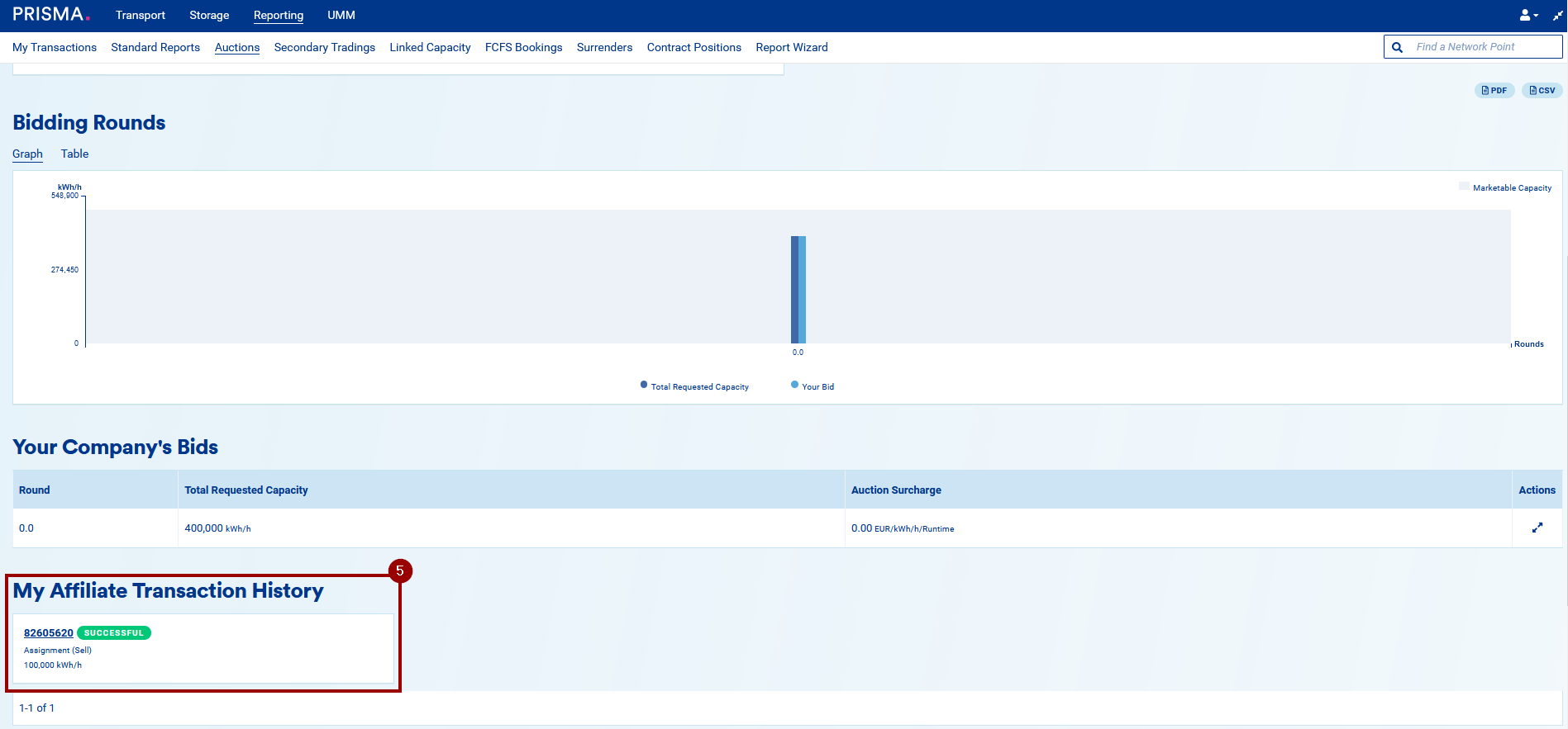 Note: you will be able to see your affiliate transactions only if the relevant operator subscribes to PRISMA's Capacity Management module.