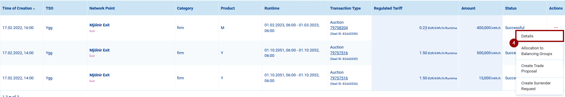 If you perform a transaction, like surrender, conversion or trade, based on capacity you have acquired on the primary or secondary market, you will be able to see the ID of that transaction in the details of the original deal.