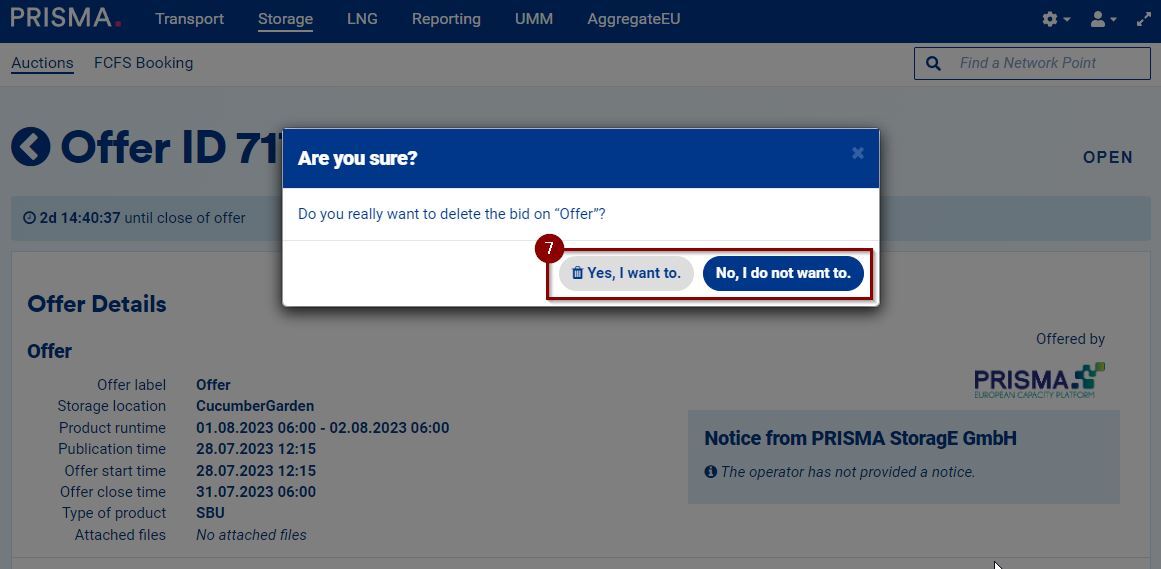 If you have placed a bid in a storage offer, you can always delete it or place another bid as long as the offer is still open. Once the offer closes, all bids are final.