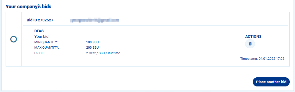 Your bid will appear at the bottom of the page, where you can easily manage it.