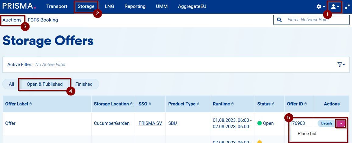 5. Click on the arrow next to the auction's details and then on "Place bid":