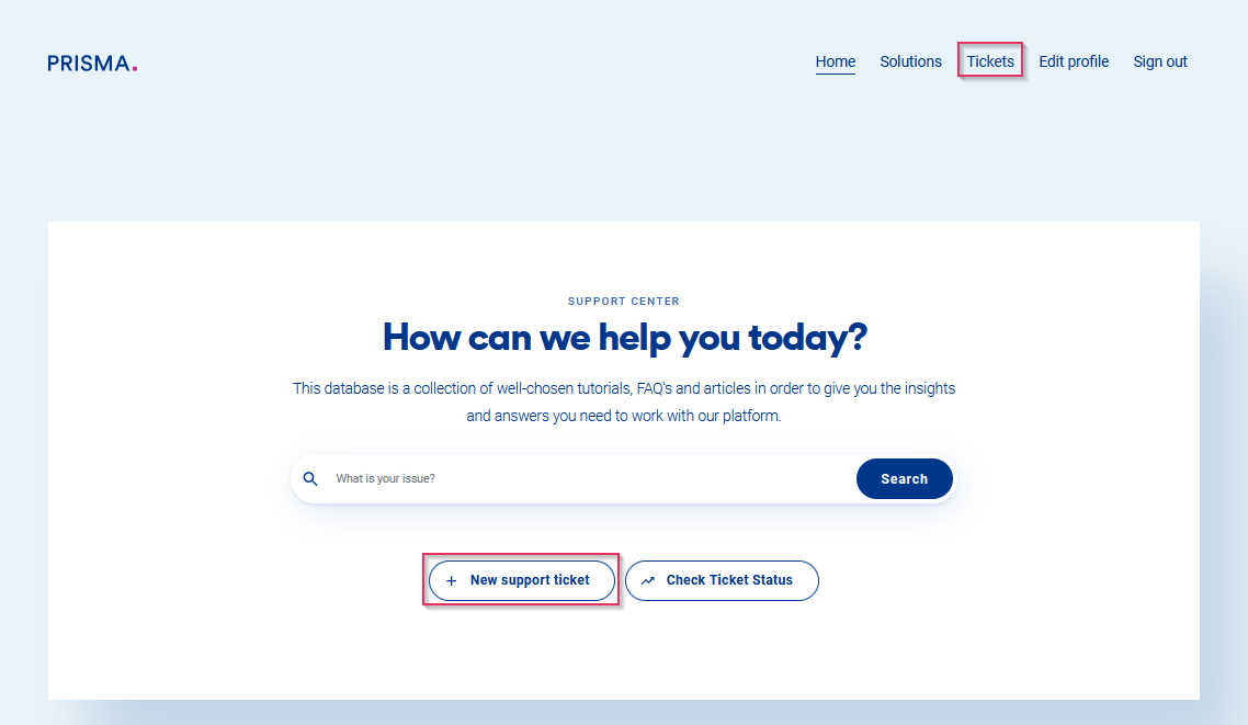 This article shows you how you can create a new ticket with the PRISMA Customer Success team.